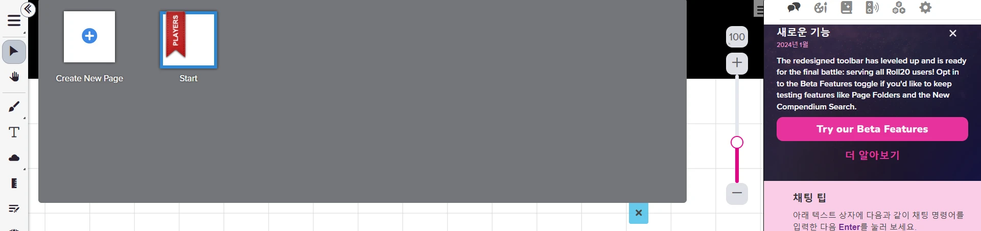 (ํ๋ ํ์ด์ง ๋ชจ์ ๋ค๋ชจ)์ ๋๋ฌ์ค๋๋ค. (24.11.22 - Roll20์ ํ์ด์ง ํด๋ ๊ธฐ๋ฅ ์